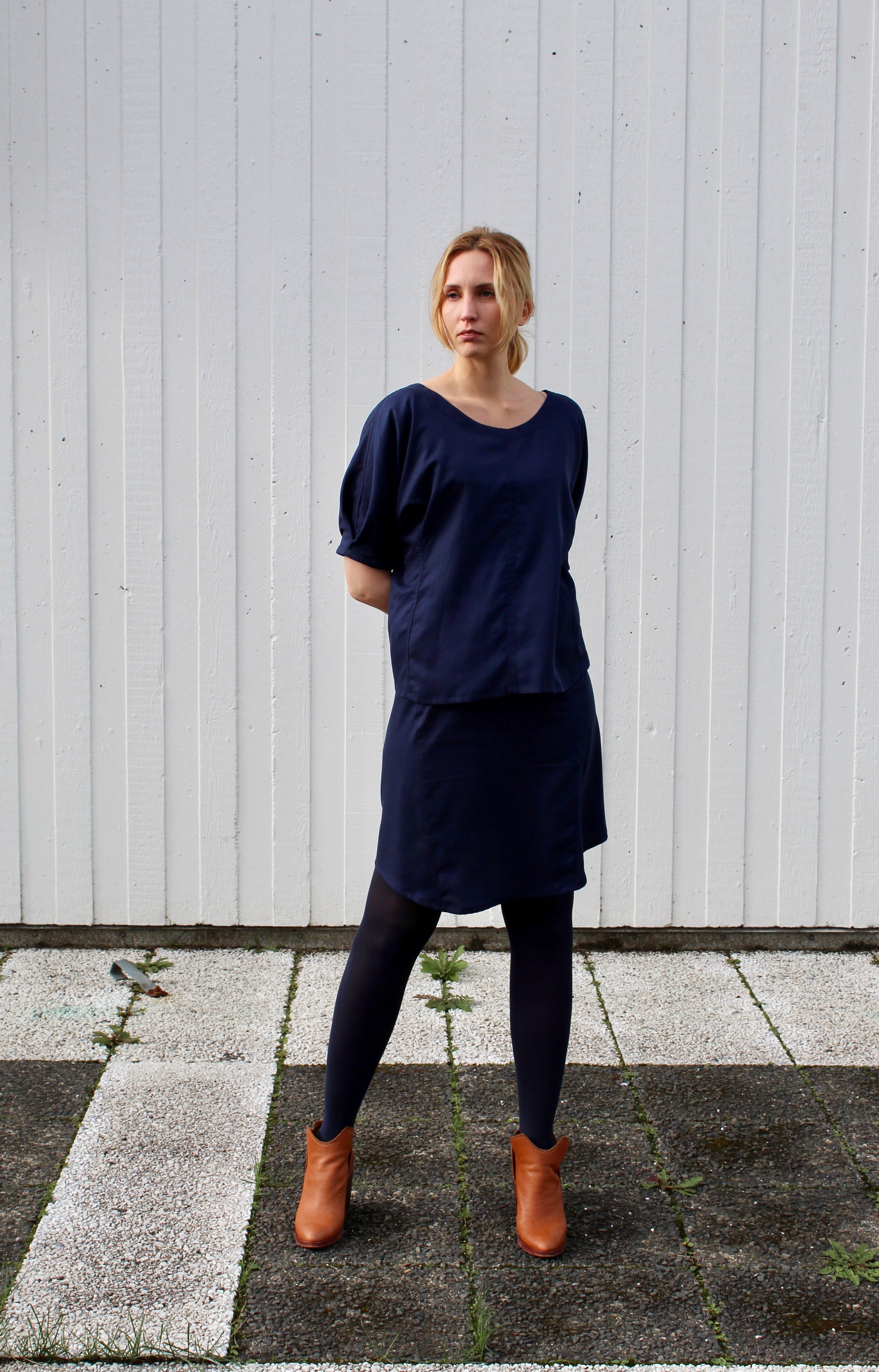 Sustainably sourced enzymatic Tencel ™ Lyocell top with voluminous sleeves pleated at the opening, a wide and round neckline and a slight hourglass shape complimented by a side gusset. No closure, pulls on.
